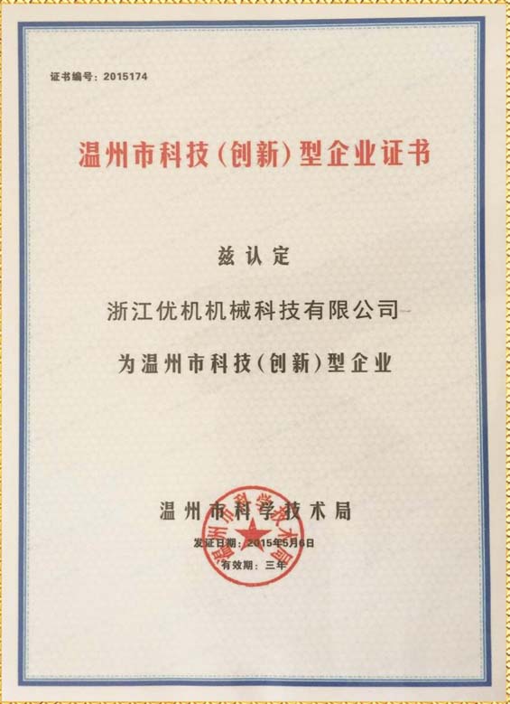 溫州市科技(創(chuàng)新型)企業(yè)證書(shū)