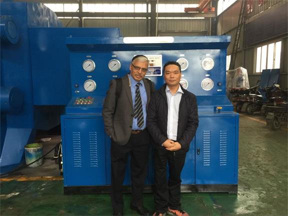 近日,印度(IVC)閥門公司INDIAN VALVE PVT.LTD總裁Mukherjee先生親自來浙江優(yōu)機(jī)機(jī)械科技有限公司驗收1月份定制的蝶閥、球閥試驗臺,這次訂購的設(shè)備是優(yōu)機(jī)公司國家專利產(chǎn)品:ZL 2014 2 0194312.6,液壓系統(tǒng)合理節(jié)能,操作人性化設(shè)計,是1月份該閥門公司技術(shù)部經(jīng)理Tomy 先生來中國實地考察各大廠家生產(chǎn)工藝及企業(yè)資質(zhì)后精心篩選確定下來的采購設(shè)備,這次采購的設(shè)備是代替IVC公司原有老式閥門測試臺主要水壓和氣壓試驗16”-32”的蝶閥和球閥。